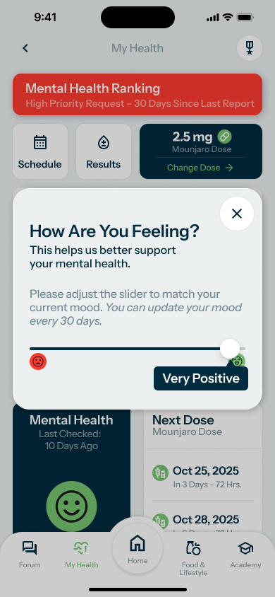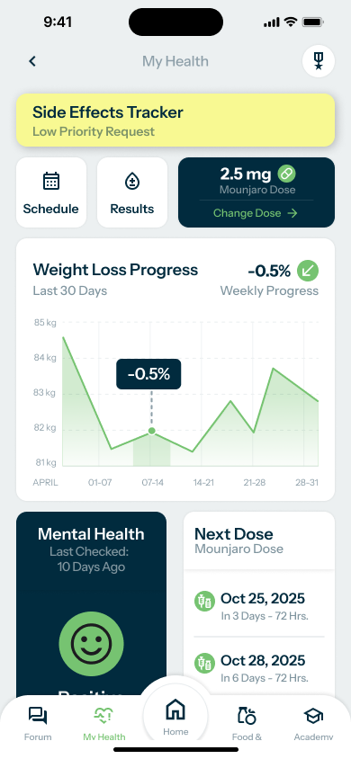 This means you'll always know your next steps. You'll always have the right dose at the right time, plus daily support from our app. And you'll never have to deal with fad diets, pharmacy visits or countless in-person appointments.